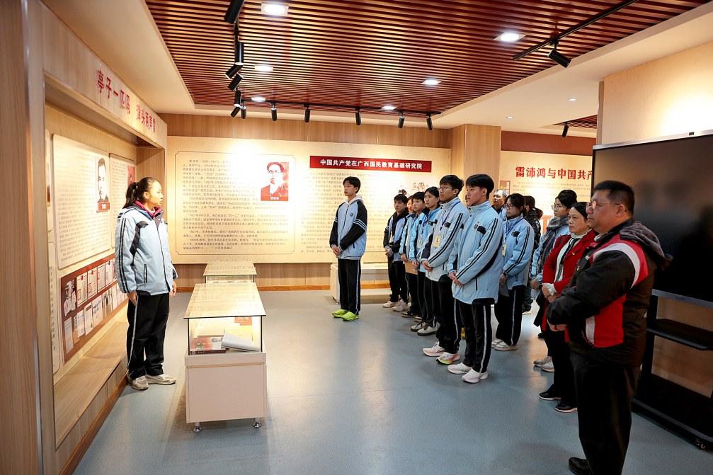 在南宁沛鸿民族中学雷沛鸿纪念馆,师生通过历史照片、手稿和实物,深入了解教育家雷沛鸿“教育大众化”的理念与实践。随后,两校师生围绕“职业教育如何传承教育家精神”展开研讨。教师们认为,优秀的前辈立足本土进行教育改革对职教服务地方具有很大启示。学生们也深有感触地说,他们将学好技能,传承教育家的赤子之心。